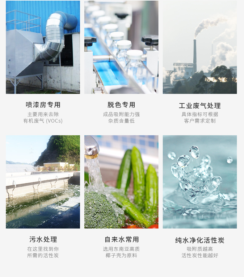 顆�;钚蕴糠譃槎ㄐ秃筒欢ㄐ皖w粒。主要以椰殼、果殼和煤質(zhì)為原料,經(jīng)系列生產(chǎn)工藝精加工而成。產(chǎn)品廣泛應(yīng)用于飲用水、工業(yè)用水、釀酒、廢氣處理、脫色、干燥劑、氣體凈化等領(lǐng)域。顆�;钚蕴窟x用無(wú)煙煤為原料,采用先進(jìn)工藝精制加工而成,外觀呈黑色不定型顆粒;具有發(fā)達(dá)的孔隙結(jié)構(gòu),良好的吸附性能,機(jī)械強(qiáng)度高,易反復(fù)再生,造價(jià)低等特點(diǎn);用于有毒氣體的凈化,廢氣處理,工業(yè)和生活用水的凈化處理,溶劑回收等方面。