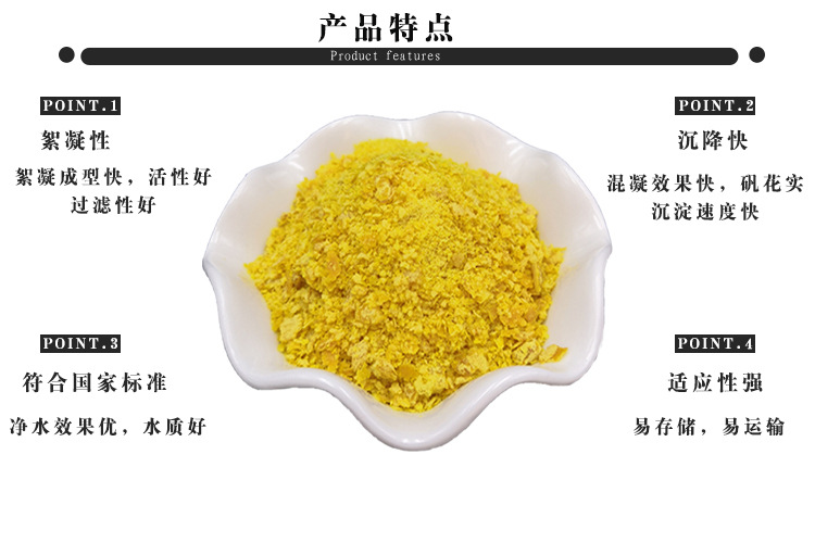 主要用于污水處理和飲用水處理方面,用于飲用水處理的原材料是氫氧化鋁粉、鹽酸,還有少許的鋁酸鈣粉,采取的工藝是板框壓濾工藝或噴霧干燥工藝。對于飲用水的處理,國家在重金屬方面有嚴格的要求,所以不論是原材料還是生產(chǎn)工藝都比棕褐色聚合氯化鋁要好。黃色聚合氯化鋁一般采用滾筒干燥生產(chǎn)或噴霧塔干燥生產(chǎn)而成,有片狀、粉狀兩種固態(tài)形式。